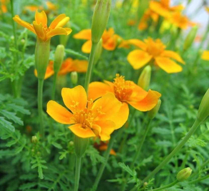 - Тонколистные, они же мексиканские (Tagetes tenuifolia) – компактные кусты до 40 см.
