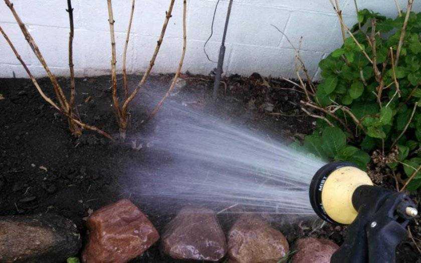 Полив осуществляется регулярно. Растение довольно сильно любит влагу, но излишняя сырость способна привести к болезни корневой системы. В засушливую погоду поливать кустарники необходимо не менее 2-3 раз в неделю. Воду для полива лучше использовать отстоянную и не холодную. Поливают, как правило, в утреннее время до восхода солнца. Необходимо стараться направлять струю воды строго в лунку и не попадать на листья и цветы, иначе они могут с появлением солнечных лучей получить ожоги. Если почва мульчированная, то не составит труда ее периодически взрыхлять, а вот открытый грунт может при засушливой погоде взяться коркой и потрескаться, чего стоит избегать.