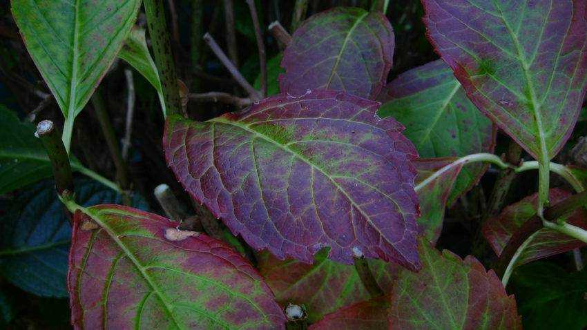 Комнатной гортензии требуется создание привычных условий для развития. Но даже при соблюдении всех правил содержания может наблюдаться изменение окраса листьев