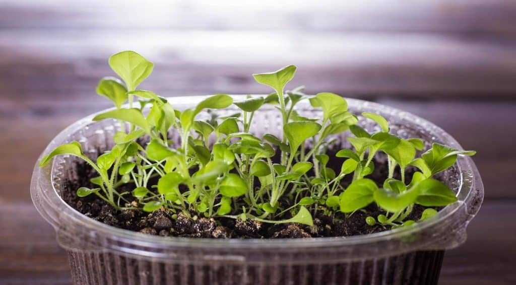Посев семян петуний проводят в общую емкость высотой до 12 см. В дальнейшем требуется пересадка в индивидуальные горшочки, лучше всего подойдет торфяная тара. Для выращивания рассады подойдет любой универсальный грунт для цветочных культур.