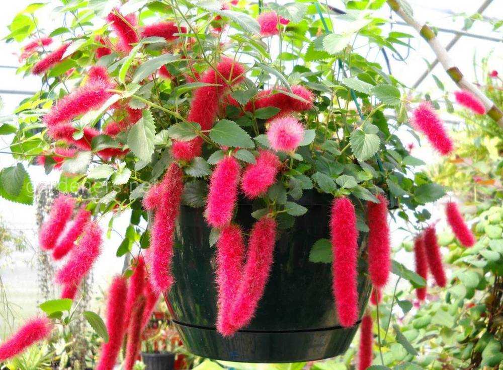 Вид также известен под названием молочай лисохвост. Относится к зеленым кустарникам среднего роста и сильноветвистыми побегами. Часто выращивается как домашнее растение. Имеет листья среднего размера яйцевидной формы с зазубренными концами краями. Свою популярность получил благодаря красивым цветам ярко-красного окраса, которые формируют колосовидные соцветия в виде хвоста лисы. Цветение наблюдается с конца марта и продолжается до ноября. При оптимальных условиях выращивания кустарник может подарить вам одновременно более 25 соцветий. В период цветения акалифа нуждается в усиленном поливе и подкормках. Любит выращиваться на светлых окнах. Размножается верхушечными черенками. Цветы состоят из множества игольчатых листочков красного цвета, которые собираясь вместе создают эффект пушистого хвоста.