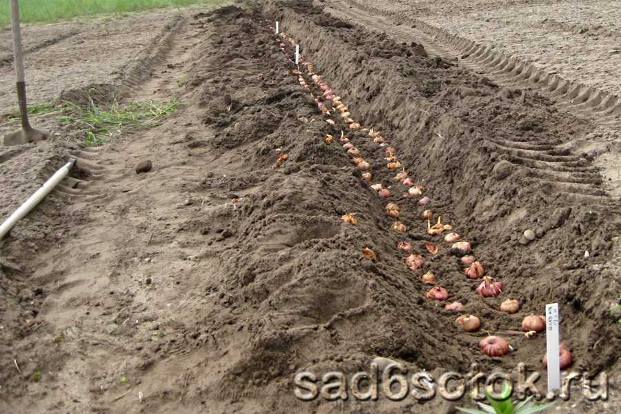 Крупные луковицы заглубляют на 10 см, мелкие – на 5 см.