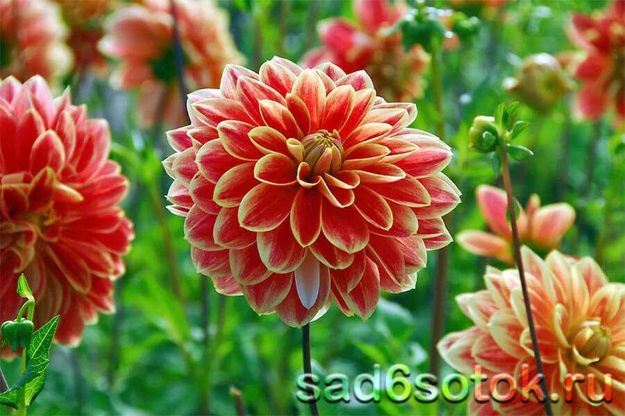 С приходом первых заморозков клубни необходимо выкапывать и отправлять на зимовку в сухое прохладное место. Весной их высаживают. Как только земля хорошо прогреется, растение начинает вегетацию. Цветение у георгинов наступает в конце июня – начале июля и продолжается до глубокой осени.