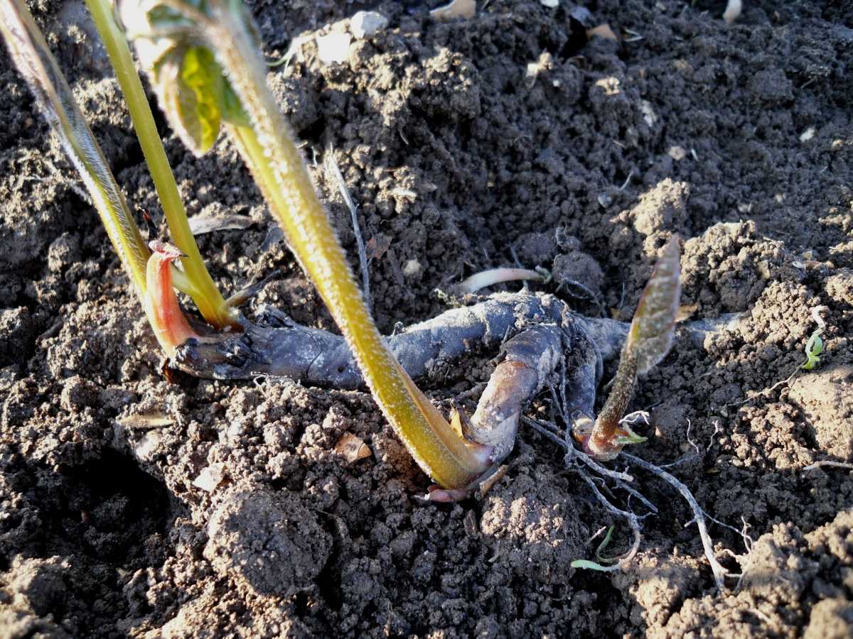 По линии развала разделяется корень (важно следить, чтобы на деленке была минимум одна почка).