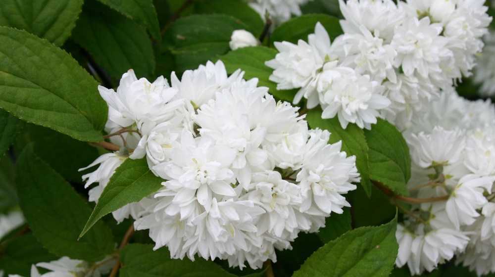 Чубушник – более известный под названием «жасмин», относится к семейству гортензиевых, зимостойкий кустарник, распространенный в средней полосе России. Чубушник обыкновенный с бело-кремовыми душистыми цветками достигает 3 м в высоту. Выносит морозы до -25 °С. Период цветения – начало, середина июня. Используют кустарник для групповых и одиночных посадок, а так же в качестве живой изгороди.