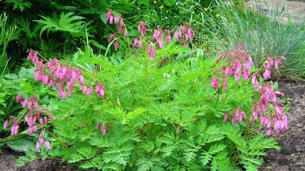 Дицентра великолепная отлично подходит для украшения сада Незаслуженно подзабытая цветоводами дицентра – универсальное растение в равной степени пригодное для украшения террас, декорирования альпийских горок и рокариев, одиночных посадок посреди газонов, а также создания пышных многоярусных цветочно-кустарниковых композиций.