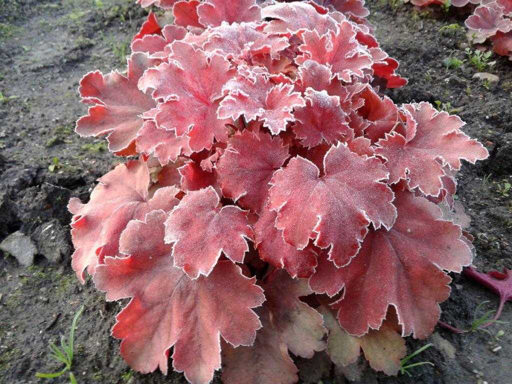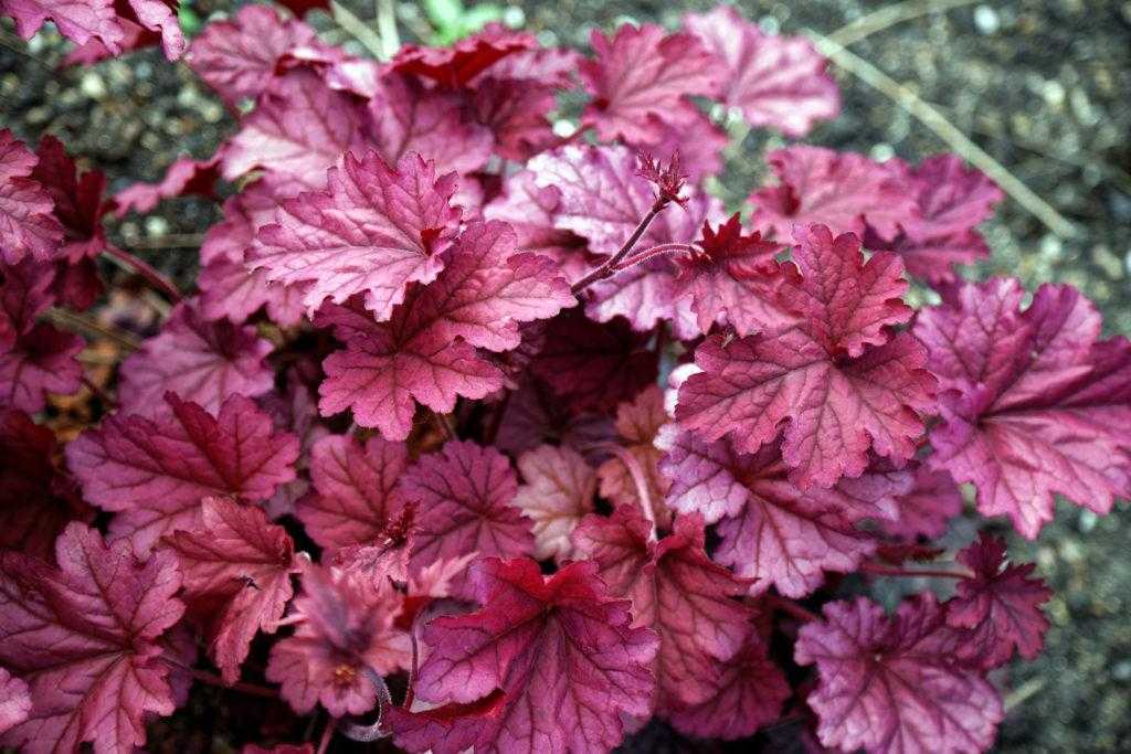 Краснолистные сортовые гейхеры выделяются листьями с красноватыми, багряными, бордовыми, вишневыми оттенками: