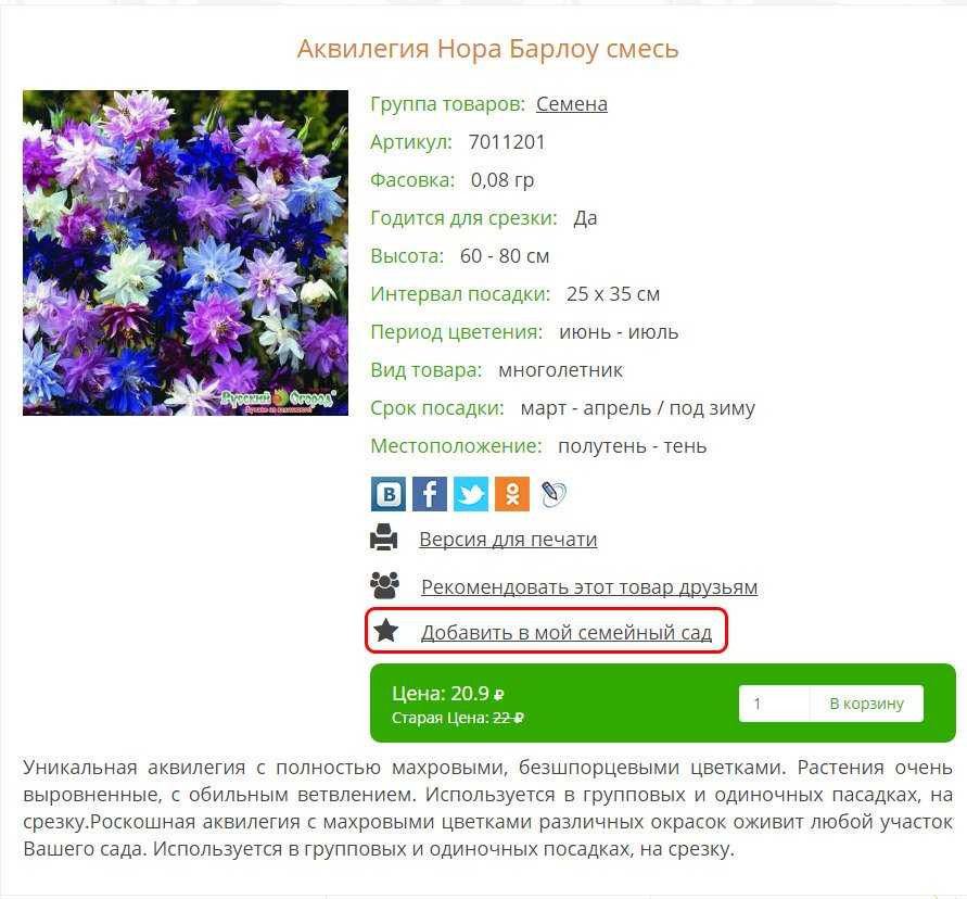 Просматривая теперь подробное описание товара, вы можете нажать кнопку «Добавить в Мой Семейный Сад», и понравившийся товар сохранится в выбранную вами папку.