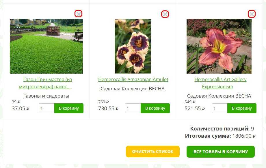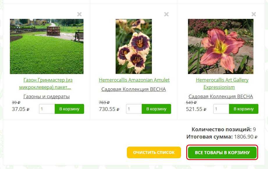 Чтобы начать, воспользуйтесь уже созданным списком «Избранное», сохраняйте в него все понравившиеся вам позиции. Если хотите создать список со своим названием, просто нажмите кнопку «Добавить новый список». Дайте ему любое название, которое вам поможет сориентироваться, например «Семена на 2016 год», «Моя клуба», «Летняя клумба» и др. И когда придет час, в несколько кликов закажите весь необходимы товар, например, для Вашего зимнего сада.