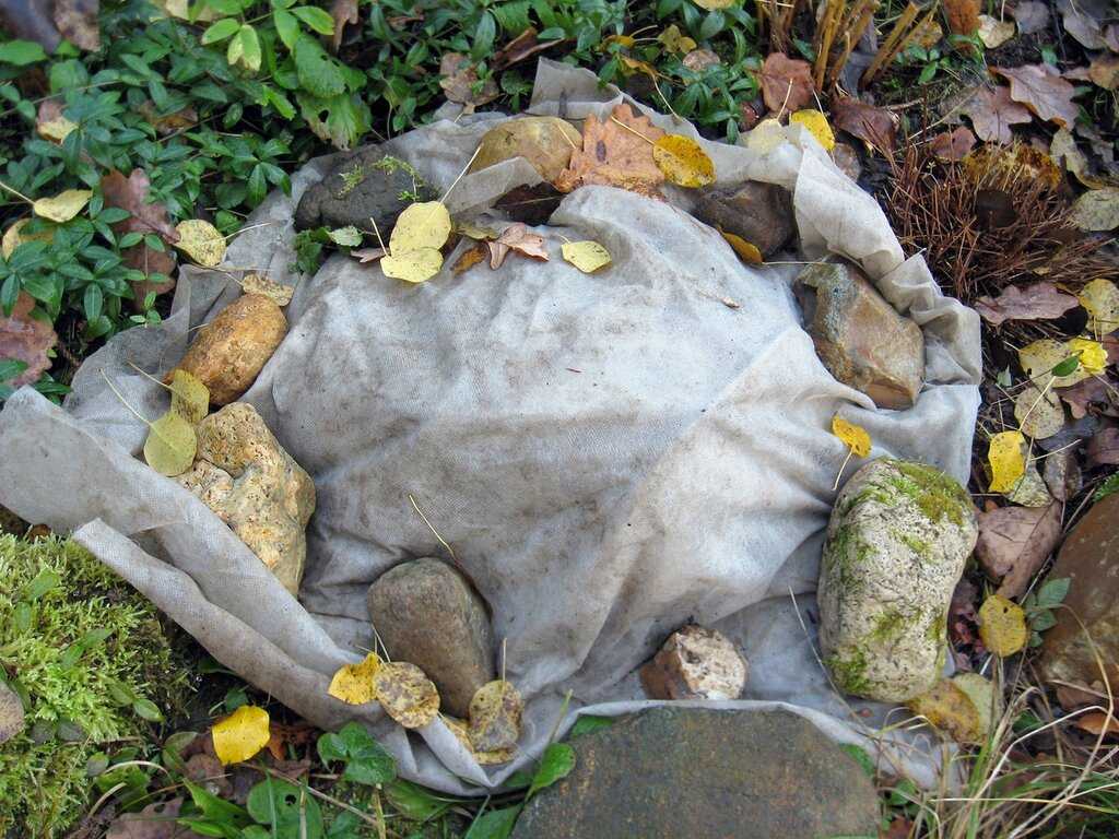 Не следует уже с первых похолоданий укутывать обрезанный кустик. Легкие морозы пойдут ему лишь на пользу, закалив. Укрывать растение рекомендуют специальными материалами: лутрасилом или спандбондом. Если оных нет, то подойдет обычная полиэтиленовая плотная пленка. Обязательно следует ее зажать по краям камнями, чтобы исключить возможность сдувания ветром.