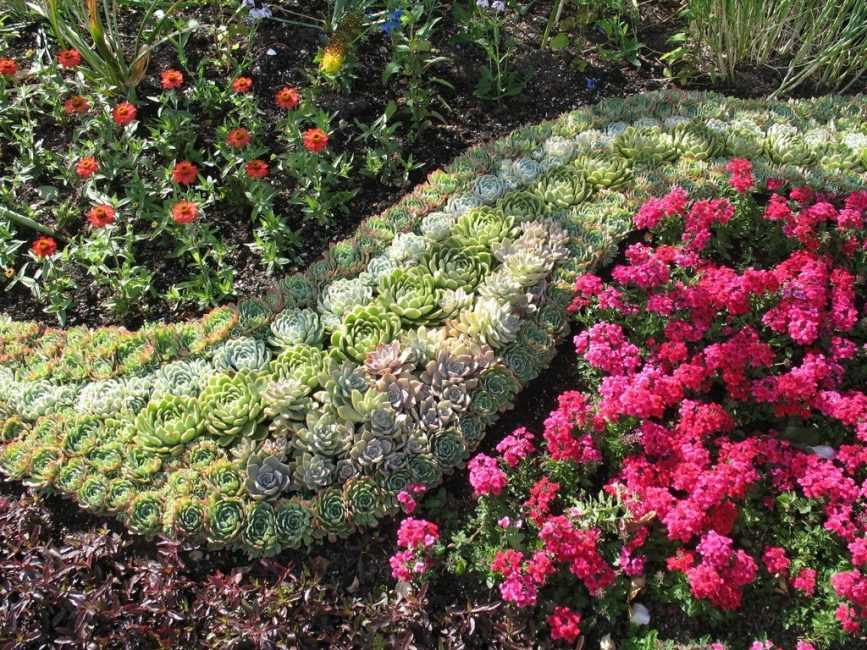Ковёр со сложным рисунком из различных гибридов каменной розы