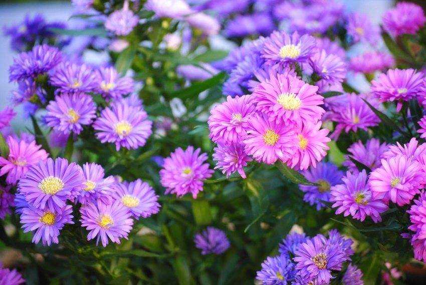 Уход за астрами простой. Размножение легкое. Они не боятся небольшого похолодания. Обильное цветение украшает территорию сада своей пестротой очень долгое время. Иногда куст настолько усыпан цветущими бутонами, что листочков практически не заметно.
