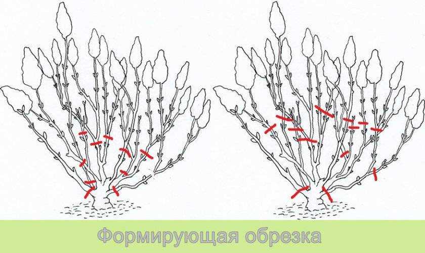 - Прореживающая – удаление молодых побегов, которые сильно загущают куст.