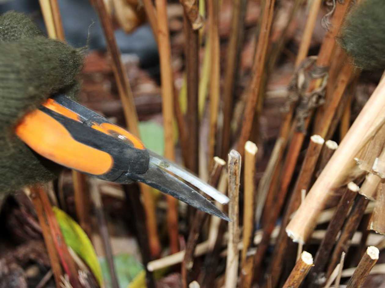 В начале осени пион начинают готовить к холодам. Для этого обрезают все побеги, укорачивая их до 10-15 см. Срезанные части можно уложить сверху в качестве профилактического укрытия.