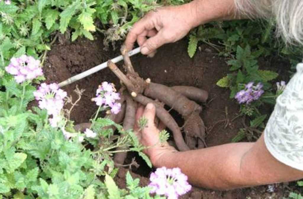 - их разрезают на фрагменты, у которых есть по несколько почек и толстых корешков;