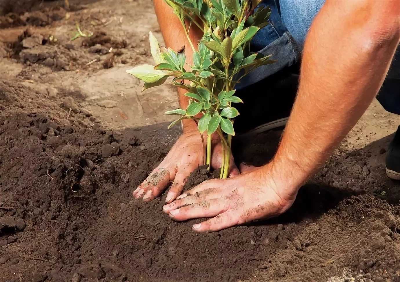 Выбирайте для кустарника воздухопроницаемую почву, богатую гумусом со слабокислой реакцией. В процессе посадки растения следите за тем, чтобы почки находились не ниже 3 см от уровня почвы. На дне посадочной ямы для пиона обязателен хороший дренаж: смесь песка и гравия, например.