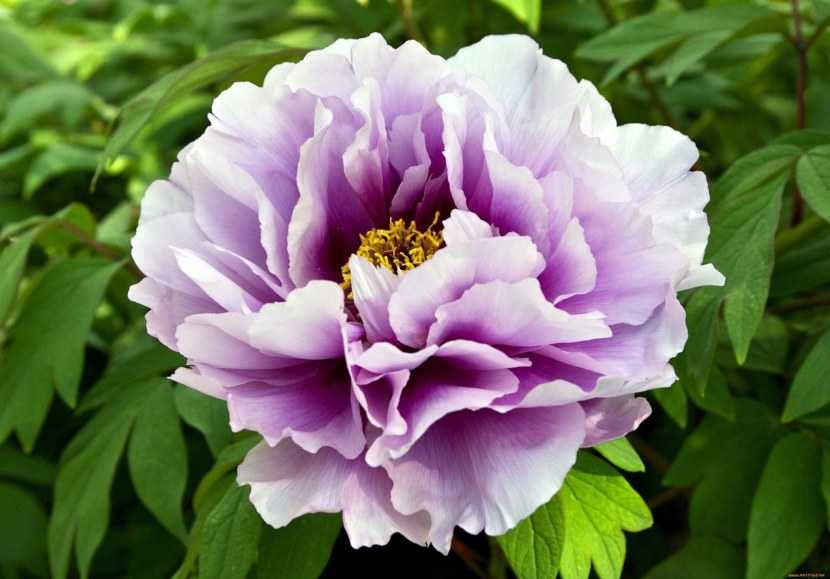 - Китайско-европейские разновидности пионов включают в себя растения с крупными, махровыми бледно-розовыми либо фиолетовыми бутонами;