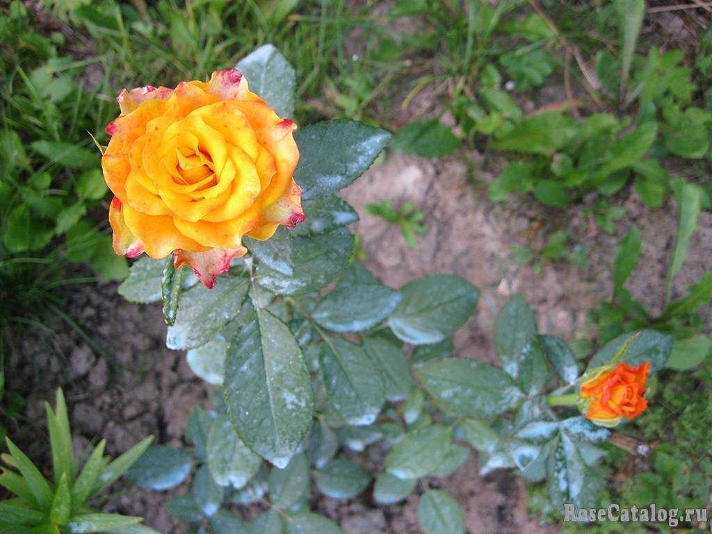 Если у распускающихся почек появилась оранжевая пыль, то это ржавчина. На листьях образуются оранжеватые выпуклые пятна. Ближе к концу лета они чернеют. В качестве профилактики не стоит допускать скопления опада под цветком. Почву стоит замульчировать. Розу, и землю вокруг неё опрыскивают железным купоросом. Провести процедуру стоит в марте. Когда почки уже распустились, стоит обработать растение препаратом Ордан. Заражённые места стоит удалять и сжигать.