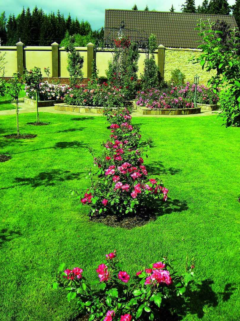 Использовать полуплетистые розы можно и в вертикальном озеленении. Если вам нужно преобразить арку, создать декоративную колонну, лучшего способа просто не найти. Вьющиеся розы позволят скрыть непривлекательные, серые постройки благодаря живой изгороди.