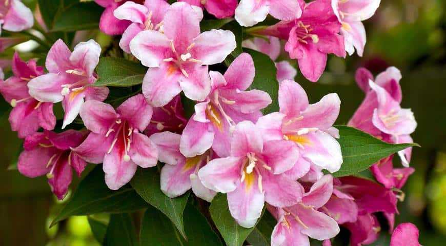 Вейгела — один из красивоцветущих декоративных кустарников, без которых трудно представить современный сад. В зависимости от сорта это растение может быть различной высоты от 50 см до 2 метров. Цветёт вейгела два раза в год. Весной и осенью кустарники покрываются невероятными по красоте многочисленными цветами белого, розового, жёлтого, сиреневого или малинового цвета. Окраска растения зависит от сорта, но все они имеют удивительную особенность — в начале формирования бутона соцветия очень светлые почти бесцветные и чем сильнее раскрываются лепестки, тем насыщеннее становятся тона.