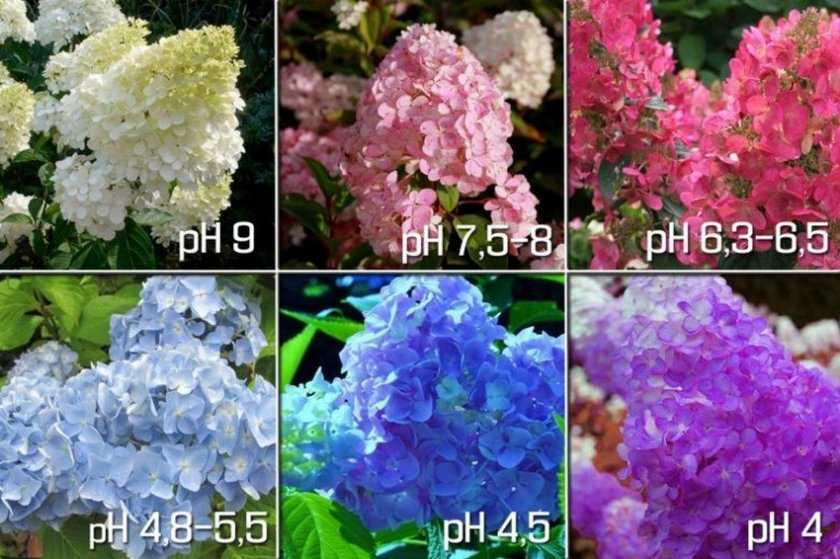 на щелочных почвах оттенки цветов розовые и сиреневые, могут бледнеть листья;