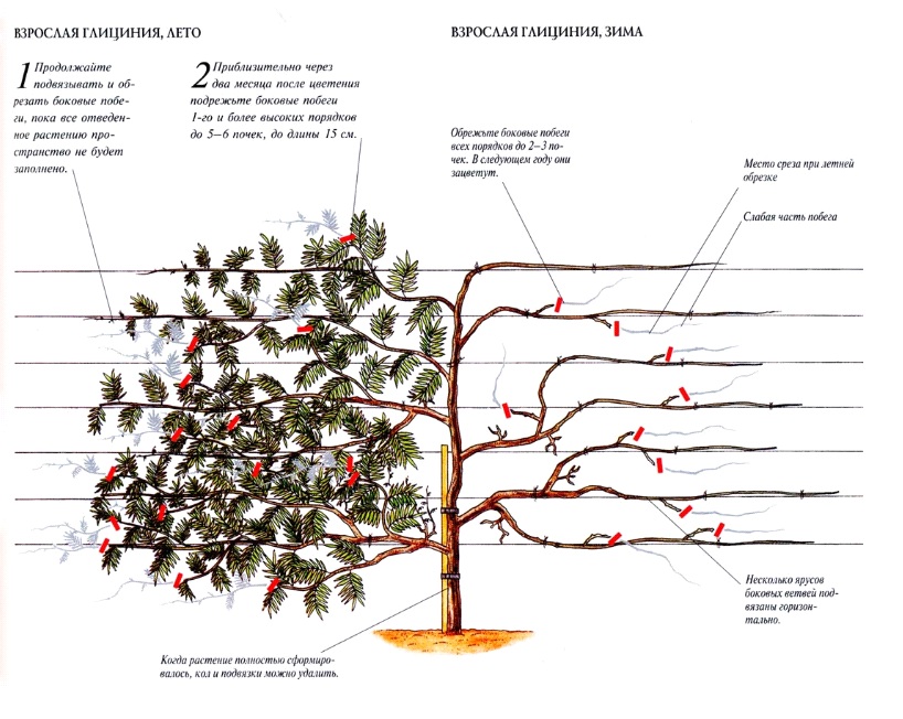 Начиная с декабря растение готовят к зимовке. Полив прекращается (до этого времени растение должно поливаться обильно, особенно в засушливое лето). При недостаточном поливе глициния сбрасывает соцветия и часть листвы.