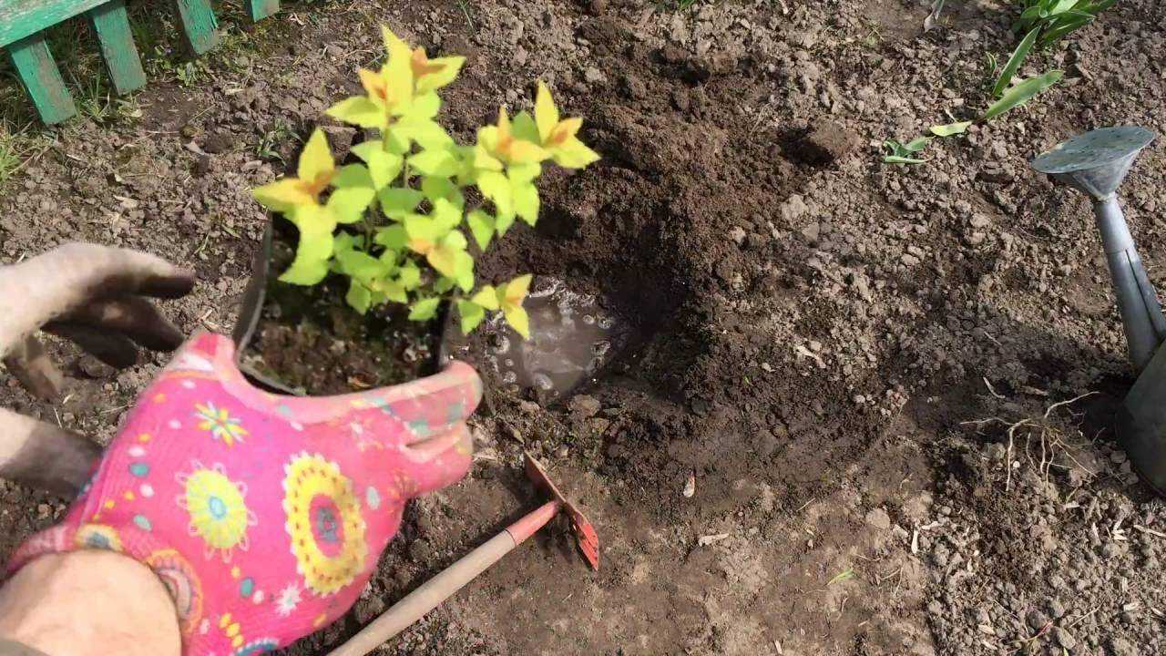 Посадку лучше производить в пасмурную, дождливую погоду. Разместив корни в ямке, их аккуратно засыпают землей и хорошенько поливают. Корневая шейка должна находиться на уровне земли. Почву вокруг кустика тщательно мульчируют — это предотвратит испарение влаги и образование почвенной корки.