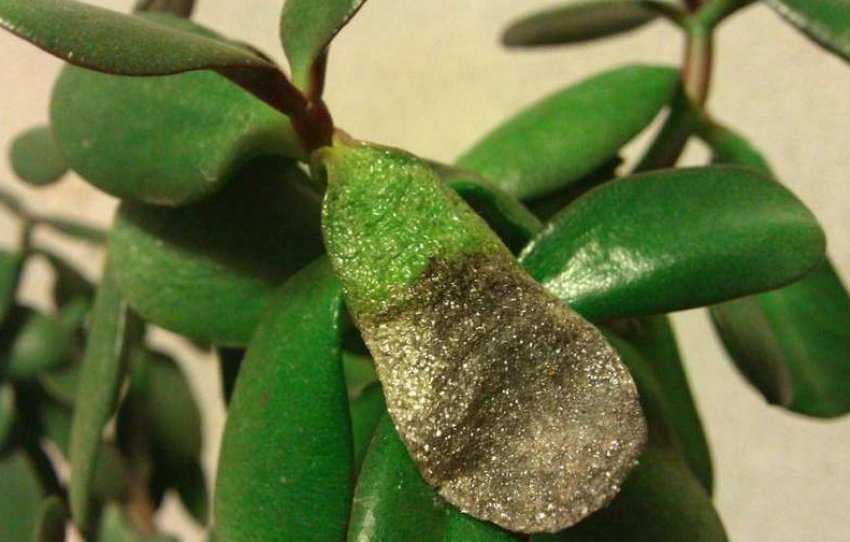 Ещё одна причина, из-за которой листья денежного дерева сохнут и чернеют — слишком яркий свет и прямые солнечные лучи. Одна из распространённых ошибок новичков в садоводстве — вынос комнатного растения на открытое солнце. Прямые солнечные лучи могут стать причиной образования ожоговых пятен на листьях, которые в скором времени отмирают.