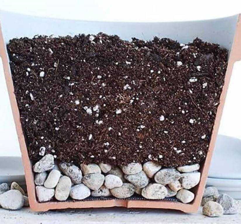 Дренаж помещают на дно горшка