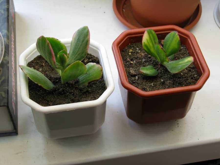 Весной листик с корнями аккуратно извлекают из горшка с материнским растением и сажают в новый вазон.