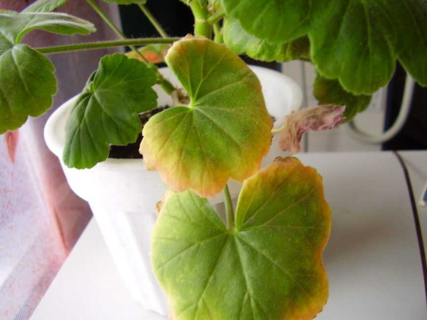 2Недостаточный или обильный полив пагубно влияет на герань. Нужно привести режим в норму, убрать поврежденные листья.